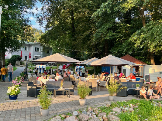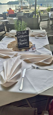 Irgendwann später haben wir unser Reiseziel, das Seehotel Frankenhorst, erreicht. Der Tisch war schon gedeckt und wir sind schnell in die schicke Ausgeh-Kleidung geschlüpft und hatten einen schönen, chilligen Abend auf der Sommerterrasse direkt am See.