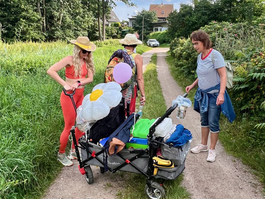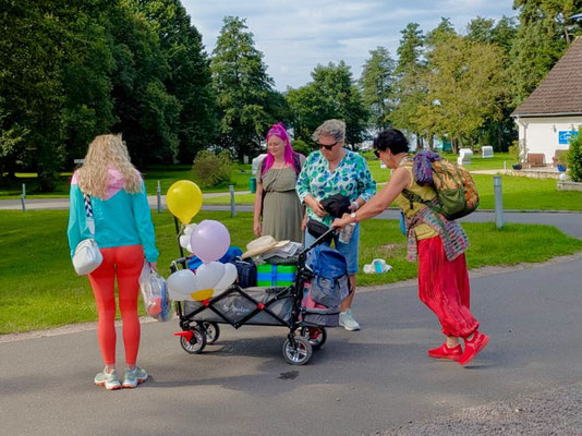 Am ersten Tag schnappten wir einen Bollerwagen und allerlei zu Essen und zu Trinken und wanderten entlang des Ufers des Schweriner Sees, bis wir ein schönes Fleckchen für unser Picknick gefunden hatten.